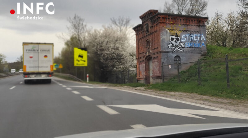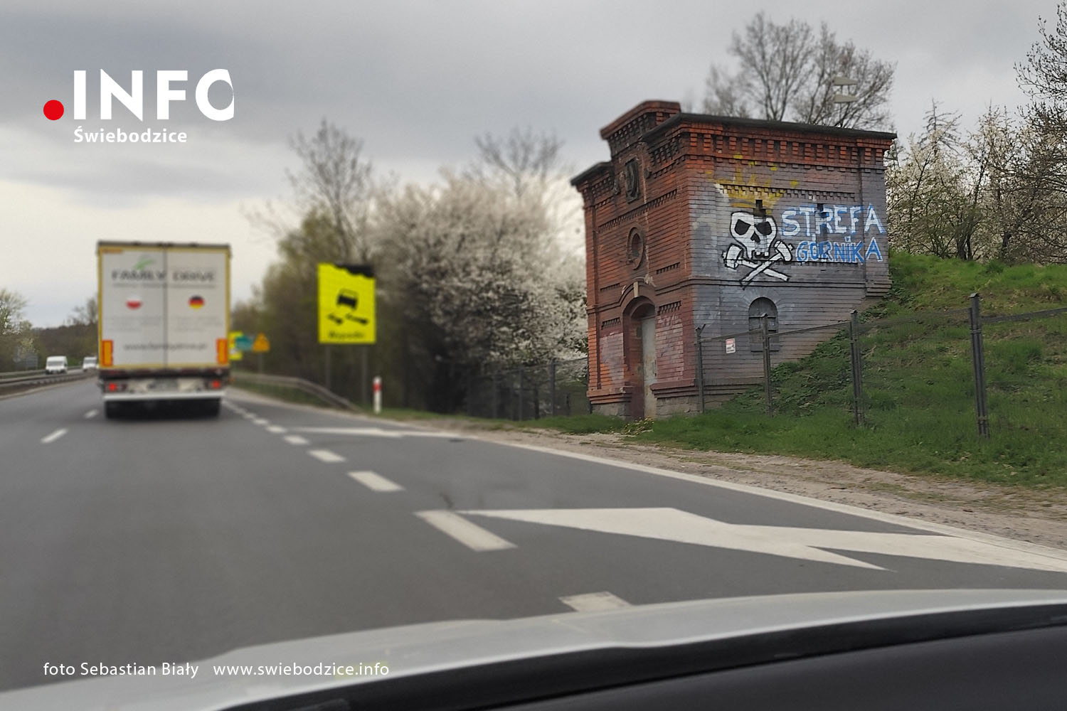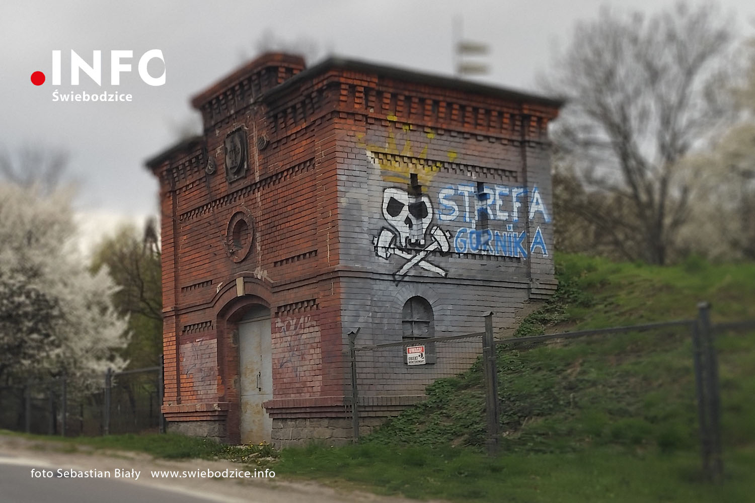 Na trasie między Świebodzicami a Wałbrzychem, wzdłuż ruchliwej DK35, kierowcy mają ostatnio okazję obcować z „dziełem”, które trudno pomylić z czymkolwiek innym niż przejawem wyjątkowo niefortunnego zrywu twórczego. Na zabytkowym budynku pompowni, należącym do Zakładu Wodociągów i Kanalizacji w Świebodzicach, pojawił się bowiem pseudomural sygnowany przez – jak można się domyślać – fana Górnika Wałbrzych.
