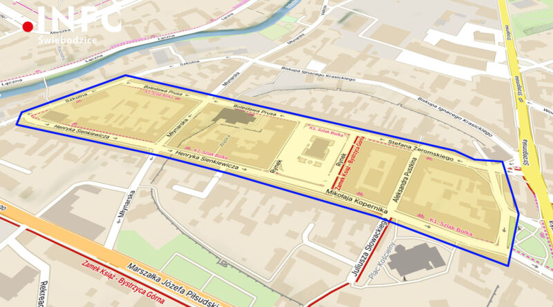 ul. Prusa, Kopernika i Sienkiewicza – do skrzyżowań z Rynkiem i Placem Jana Pawła II,